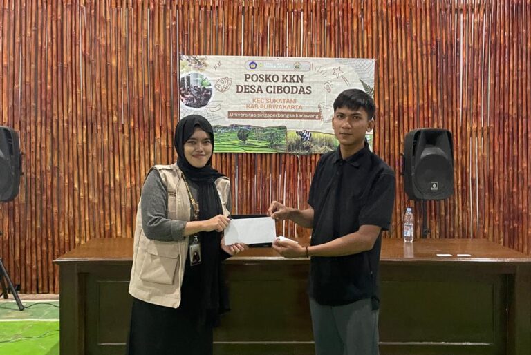 PURWAKARTA, halokrw.com – Mahasiswa Kuliah Kerja Nyata (KKN) Universitas Singaperbangsa Karawang (Unsika) mendorong pelaku UMKM Desa Cibodas, Kecamatan Sukatani, Kabupaten Purwakarta, untuk memanfaatkan digital marketing sebagai strategi pemasaran. Upaya ini dilakukan melalui kegiatan sosialisasi bertema “Dukung Produk Lokal dengan Digitalisasi Marketing” pada 12 Januari 2026.